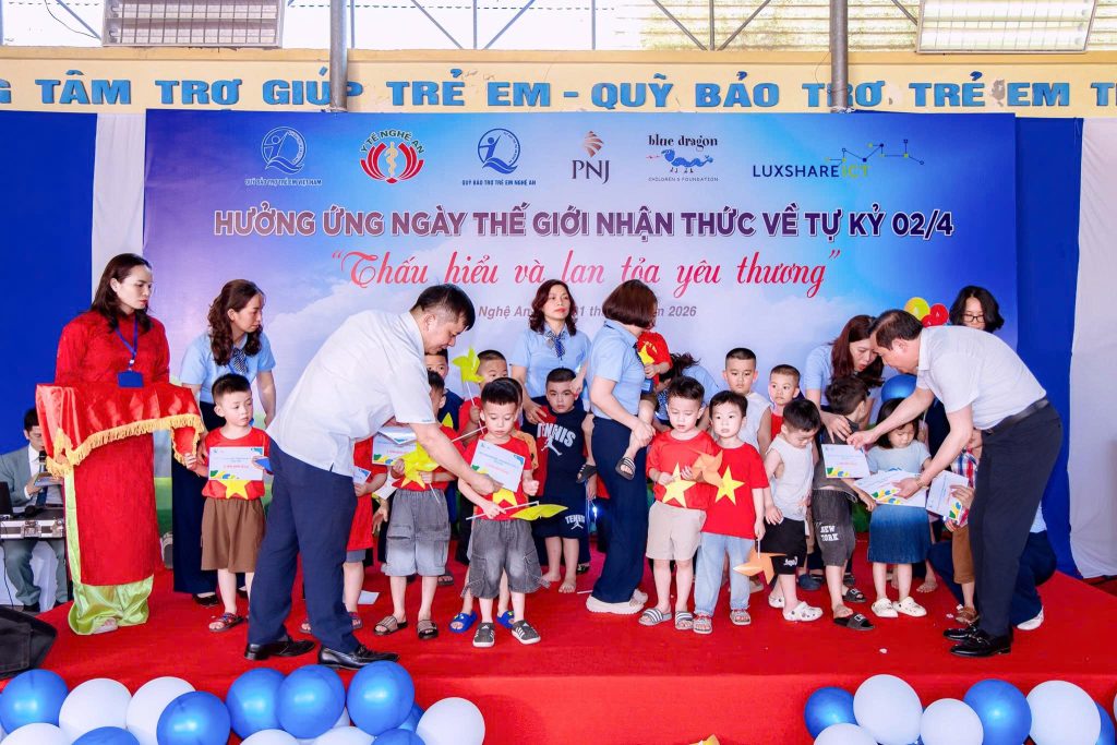 Tại chương trình, ban tổ chức trao nhiều phần quà thiết thực cho trẻ em tự kỷ và gia đình: 30 suất quà (500.000 đồng/suất) cho các gia đình tham dự tọa đàm; 50 suất (2 triệu đồng/suất) cho trẻ có hoàn cảnh đặc biệt; cùng 200 suất quà (tiền mặt và hiện vật) dành cho trẻ em có hoàn cảnh khó khăn đang can thiệp, trị liệu tại các cơ sở chuyên biệt trong tỉnh. Các phần quà được huy động từ Quỹ Bảo trợ trẻ em Việt Nam, Quỹ Bảo trợ trẻ em tỉnh, doanh nghiệp và các nhà hảo tâm, góp phần lan tỏa sự sẻ chia, đồng hành cùng trẻ tự kỷ.